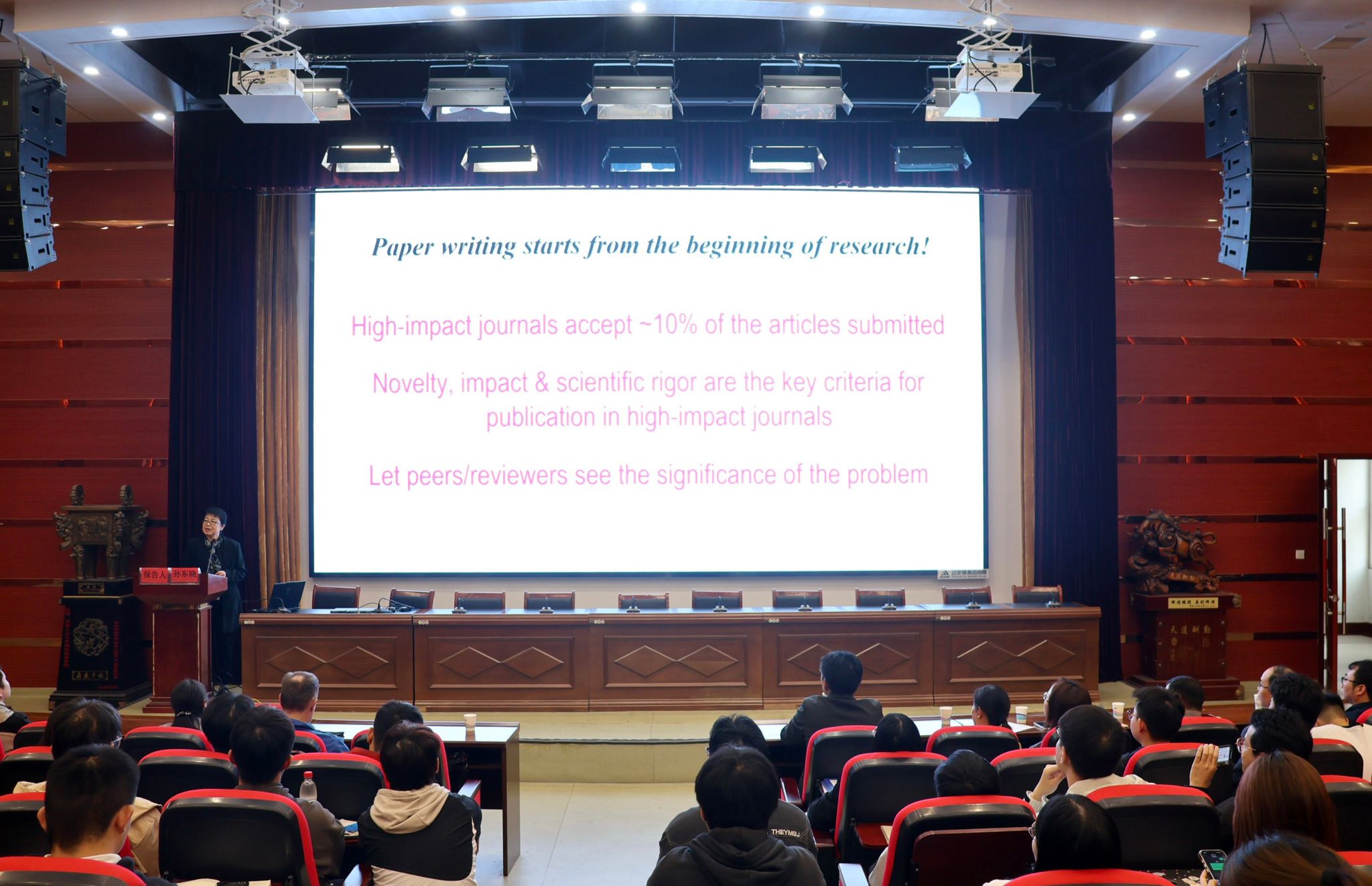 10月11日下午,国际食品科学院院士、新西兰食品科学院院士、英国皇家化学学会会士孙东晓教授应邀在惟实楼8527报告厅为粮油食品学院师生作了题为“Tricks for smooth publication in good SCI journals”的学术报告,学院师生近300人参加了报告会。报告会由粮油食品学院院长刘昆仑主持。孙东晓结合自己多年科研实践与审稿经验,深入浅出地阐述了高水平论文的准备、写作及发表技巧。她重点强调了科研设计的突破性是论文成功的根本,深入解析了高影响力期刊对研究假设、...