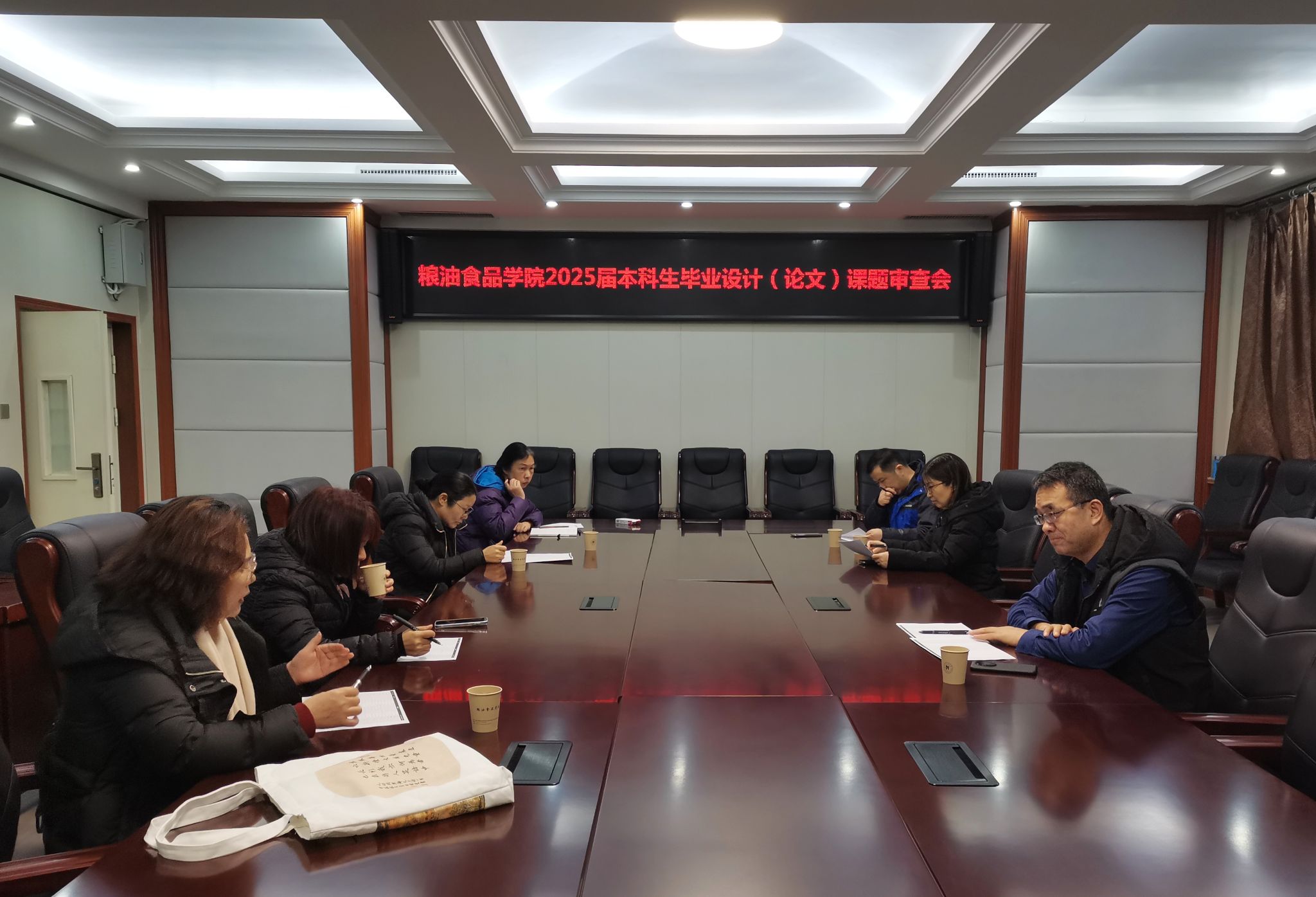 12月19日,粮油食品学院在惟实楼金谷厅召开了2025届本科生毕业设计(论文)课题审查会。会议由教学副院长关二旗主持,粮油食品学院学术委员会委员参加了本次会议。