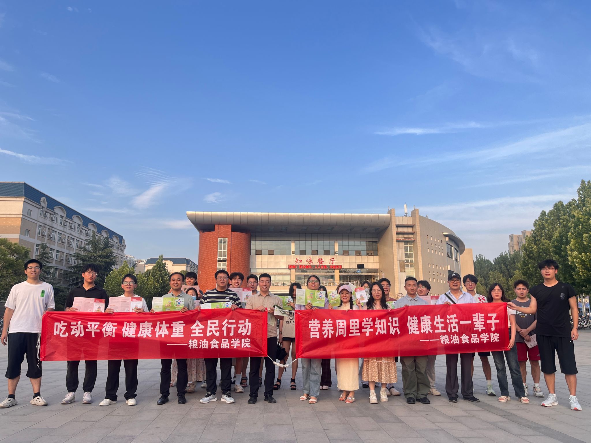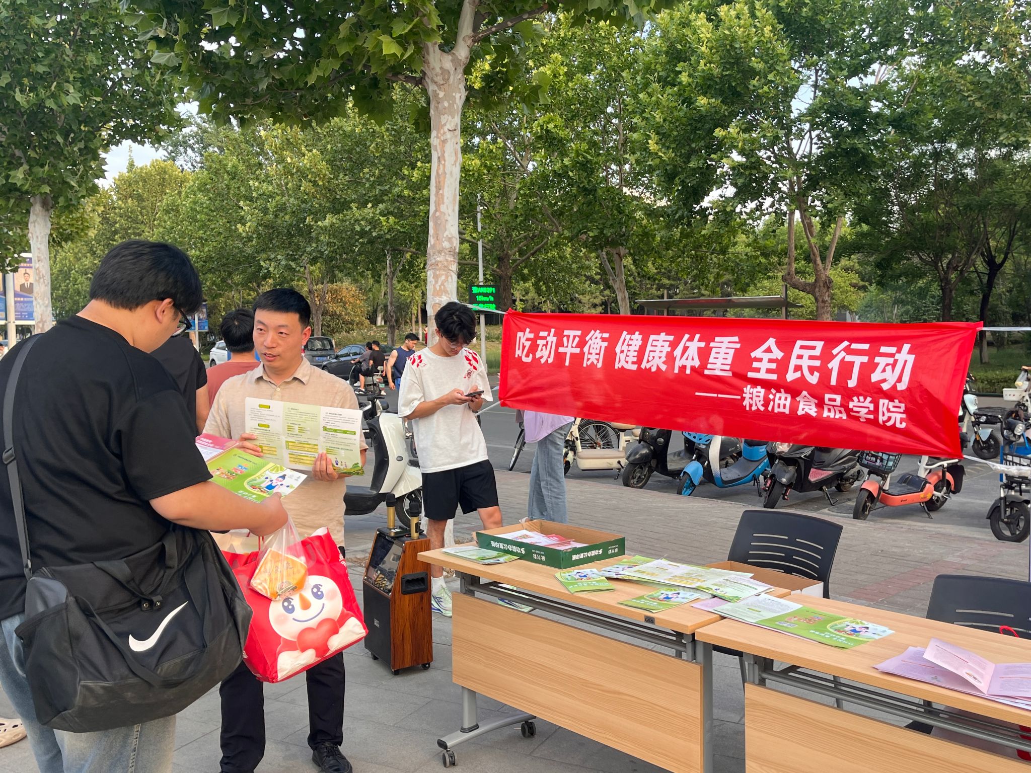 为深入贯彻落实《“健康中国2030”规划纲要》精神,积极响应国家“全民营养周”号召,5月19日至23日,粮油食品学院在莲花街校区成功举办“吃动平衡 健康体重 全民行动”主题科普活动,向全校师生开展为期五天的科学营养知识科普宣传活动。食品安全系党支部书记任文洁、系主任赵文红和全系教工到场互动。活动由学院食安系教工党支部和学院团委共同组织。
