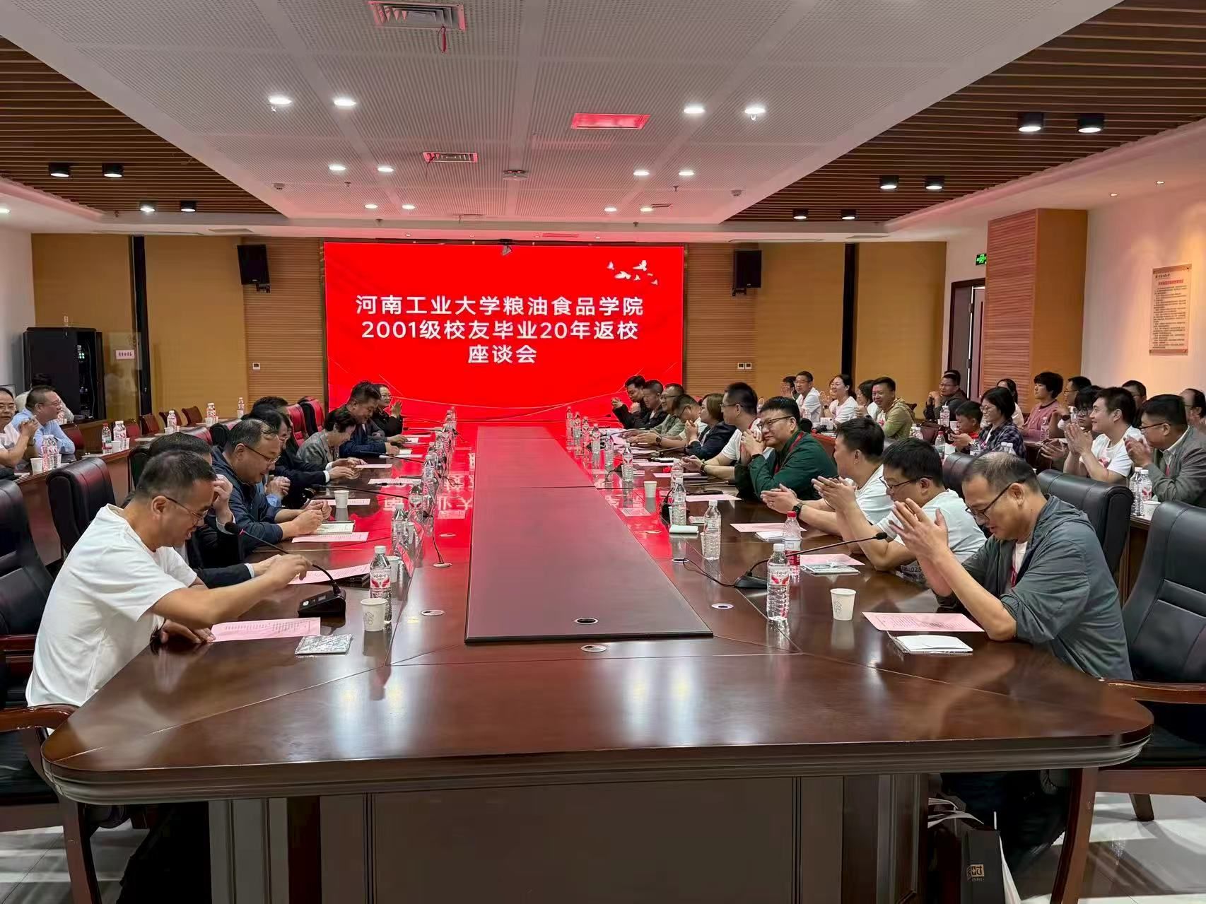 时光荏苒,岁月沉香。十一期间,来自五洲四海的80余名粮油食品学院2001级校友循着20年前的青春坐标,奔赴母校团聚。副校长牛进平,党委办公室主任、校长办公室主任、河南工业大学校友会会长刘红军,校友与基金工作办公室主任马武刚,粮油食品学院院长刘昆仑,粮食和物资储备学院党委书记代辉亚,辅导员林敏刚以及王若兰、王晓曦等教师代表与校友们跨越山海重逢,同忆青葱,共谋未来。温情时刻,校友代表向恩师献上鲜花以表心意,一个鞠躬,一声“老师好”,道不尽感恩与敬意;掌声、笑声、泪光交织,热烈而温馨。