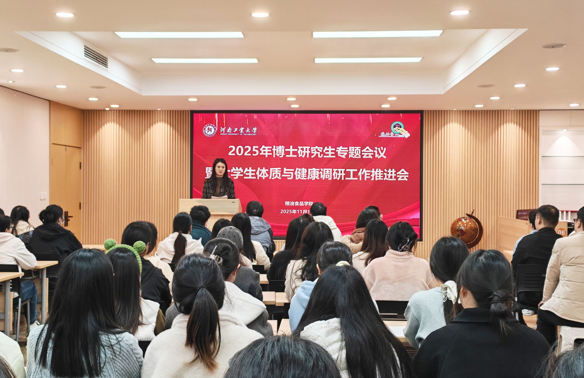为全面落实《2025年河南工业大学学生体质与健康调研工作方案》要求,11月10日下午,粮油食品学院在惟实楼捷赛厅召开大学生体质健康调研工作推进会。院党委书记张兴振、全体辅导员和在校博士生参加会议。会议由院团委副书记王桂英主持。
