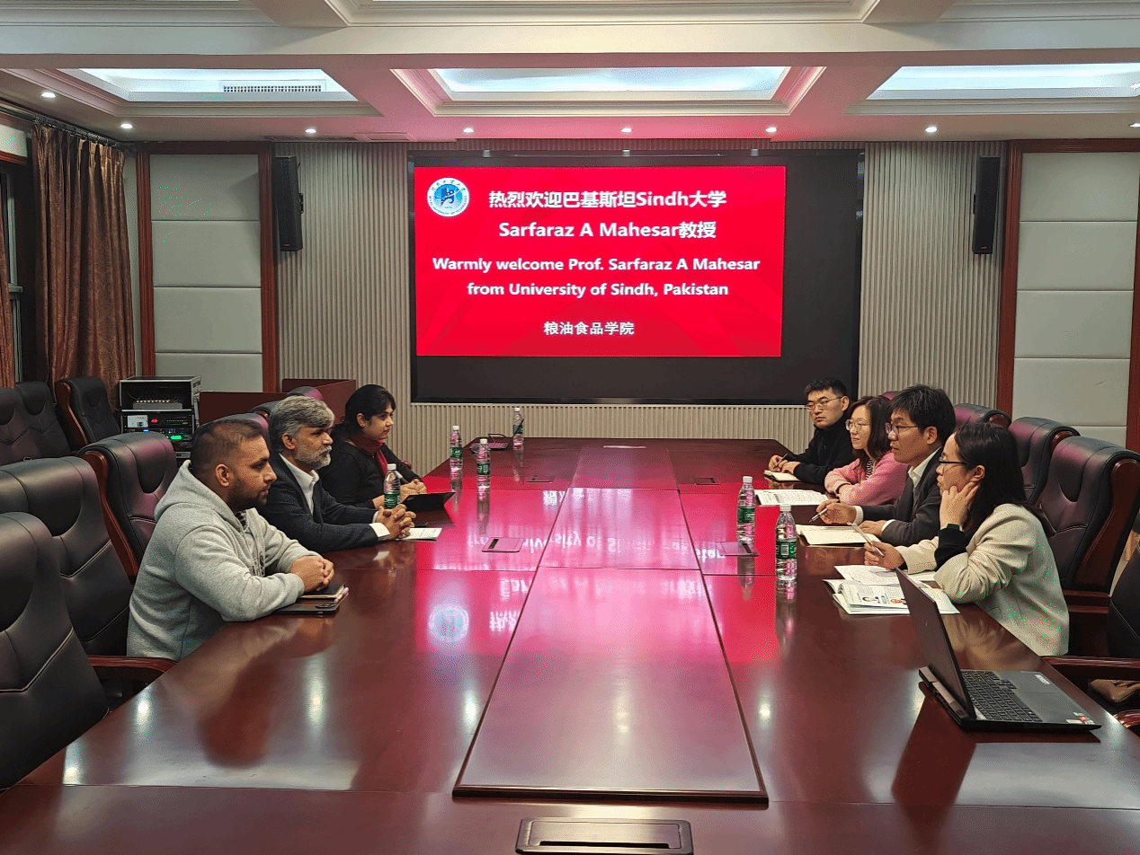 座谈会上,刘昆仑首先介绍了学院在谷物加工、油脂工程、食品科学等领域的学科优势与特色,并重点分享了学院在粮油加工技术创新、质量安全控制等方面的最新成果。Sarfaraz A Mahesar详细介绍了其团队的研究方向与进展。双方围绕多学科交叉的潜在合作点进行了探讨,并就联合开展粮油加工关键技术攻关、共同申报国际科研项目、推进师生互访与学术资源共享等初步达成合作意向。