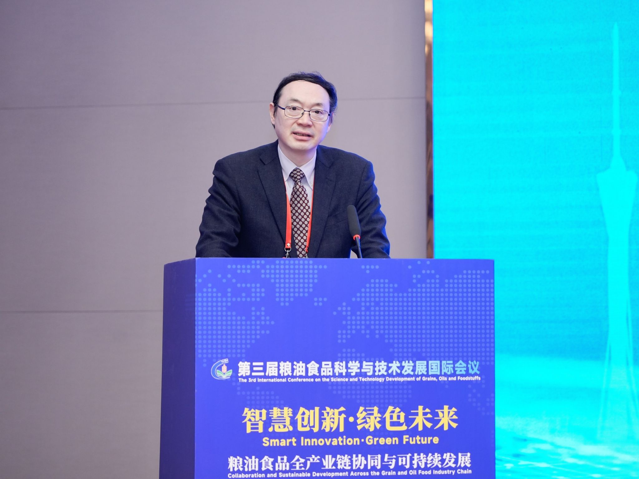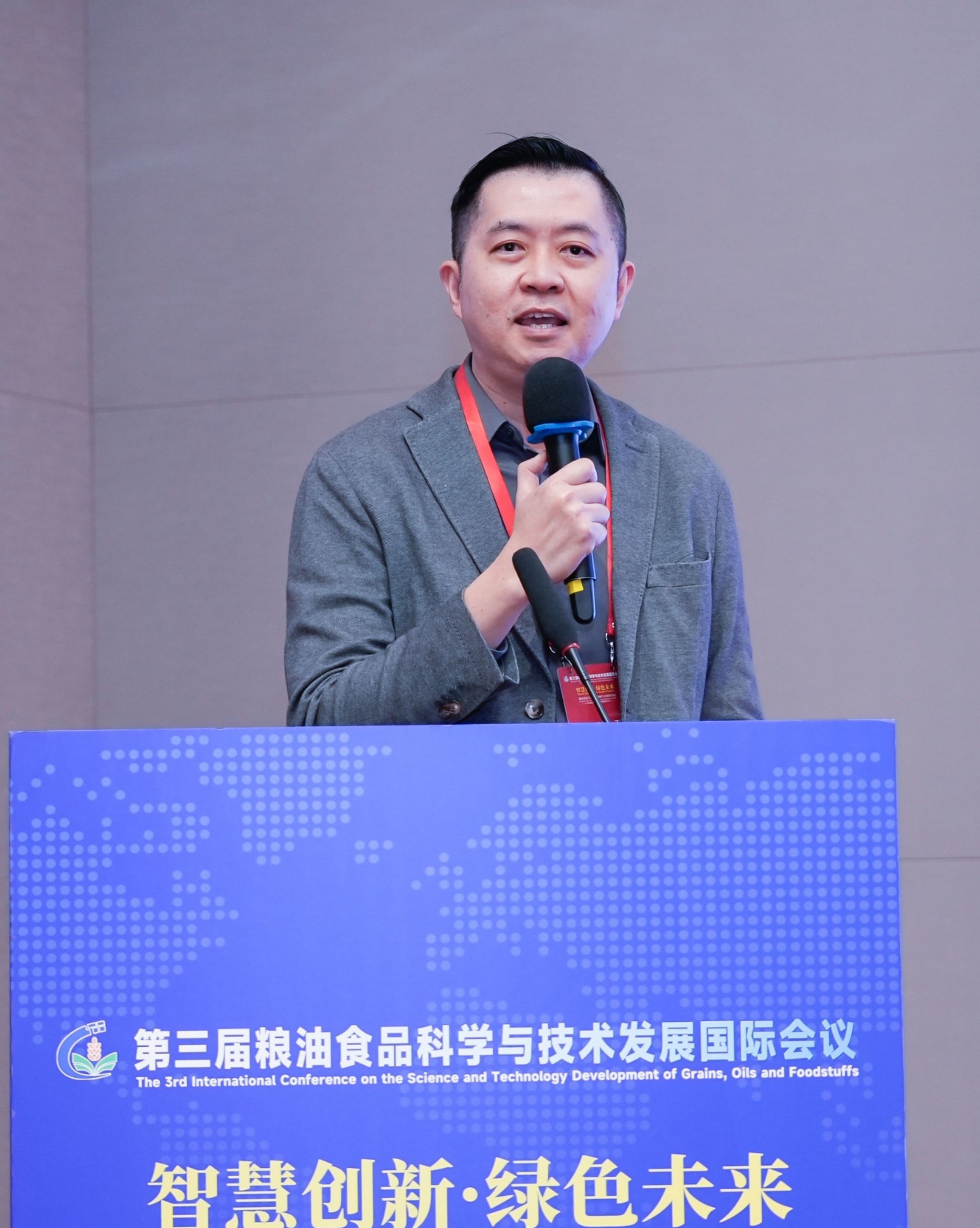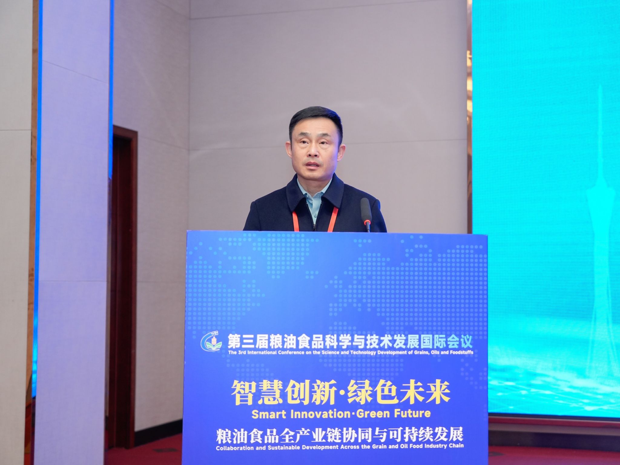 谭本刚代表共同主办单位向与会嘉宾致欢迎辞。他指出全球粮油食品产业面临气候变化、资源约束、食品安全等挑战,在这一背景下,国际社会比任何时候都更需要团结协作、通过本次国际会议凝聚共识、共享技术成果。