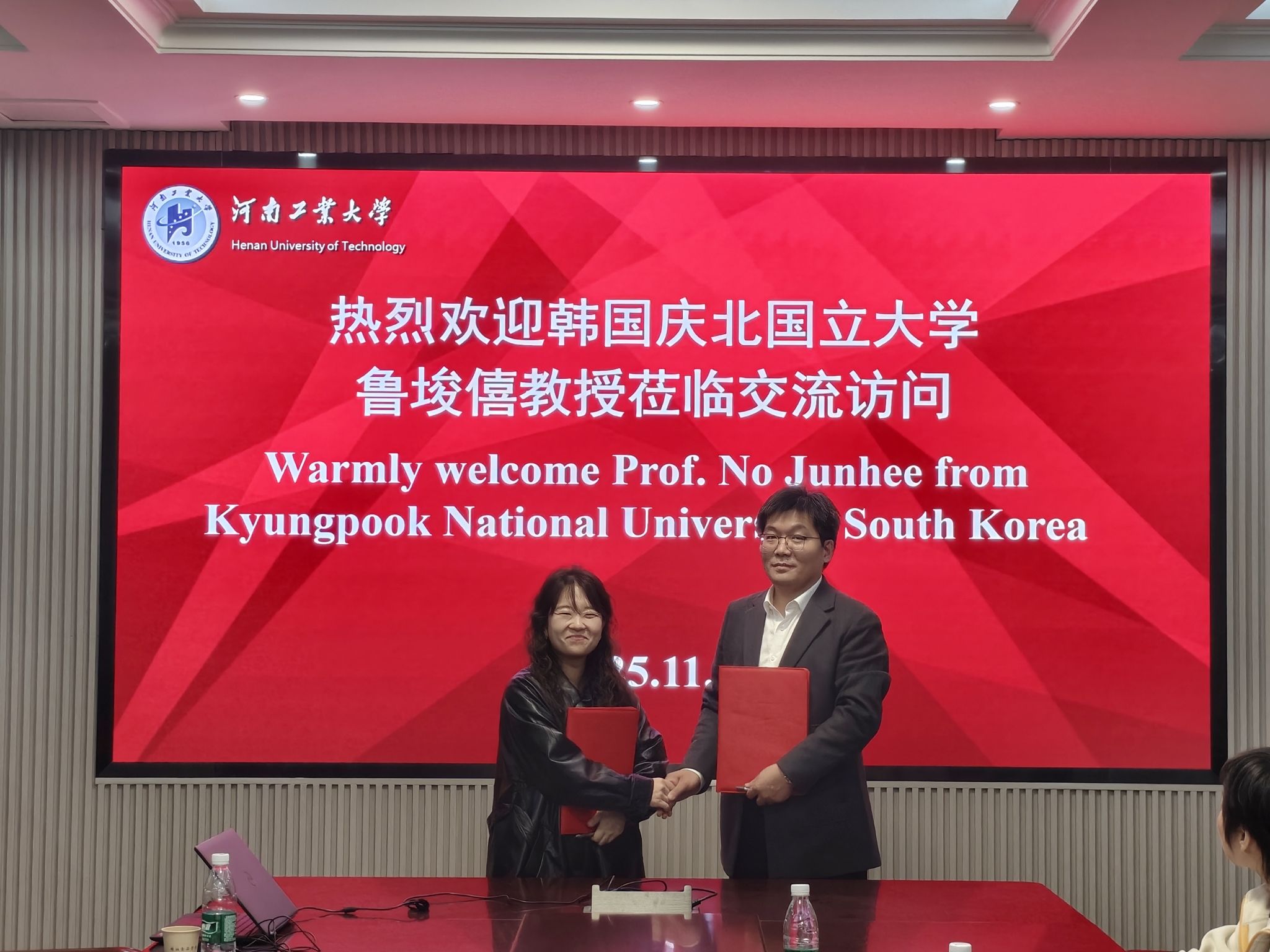 最后,刘昆仑和鲁埈僖分别代表河南工业大学粮油食品学院、庆北国立大学生活科技学院签署了合作协议。此次签约将有利于双方在人才培养、联合科研方面的合作交流,为学校“双一流”创建、学科建设、国际交流及高质量发展提供有力支撑。