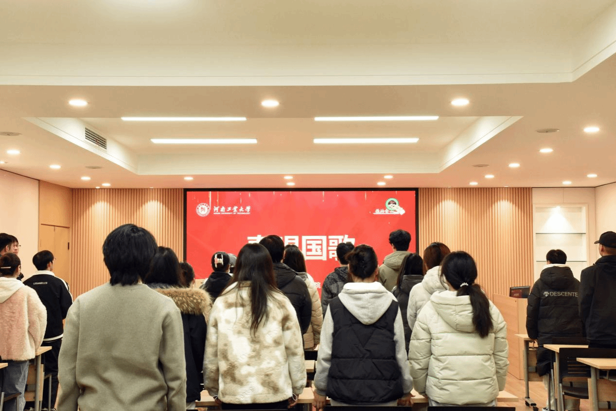仪式伊始,全体人员起立,奏唱《义勇军进行曲》。全体参会者神情肃穆、身姿挺拔,齐声高唱国歌,在激昂的旋律中凝聚奋进新时代的青春力量。