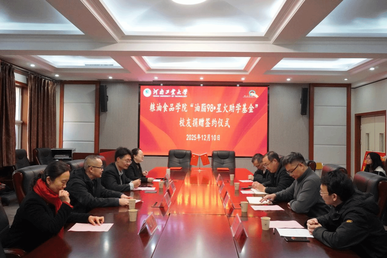 “油脂98•星火助学基金”不仅是一份物质支持,更承载着校友对母校的深情及对后学的期许,这份双向奔赴的情谊,将继续在粮油食品学院的育人之路上温暖绽放。