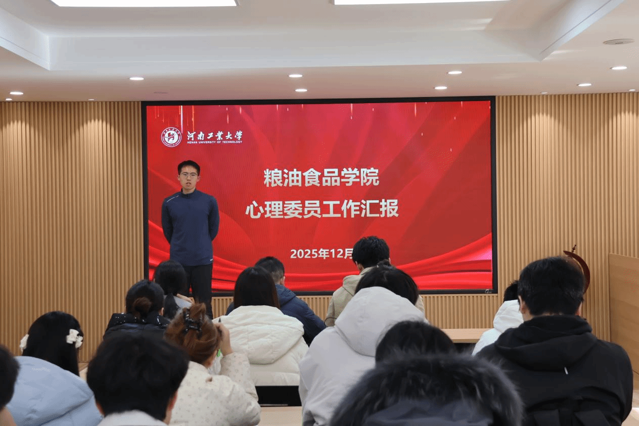为全面总结本年度心理健康教育工作成效,充分发挥朋辈领航作用,筑牢校园心理安全防线,12月15日中午,粮油食品学院在惟实楼捷赛厅召开“朋辈领航”暨心理委员工作汇报交流会议。学院心理工作专干王震华、各年级辅导员、全体班级心理委员参加会议。会议由学院团委副书记王桂英主持。