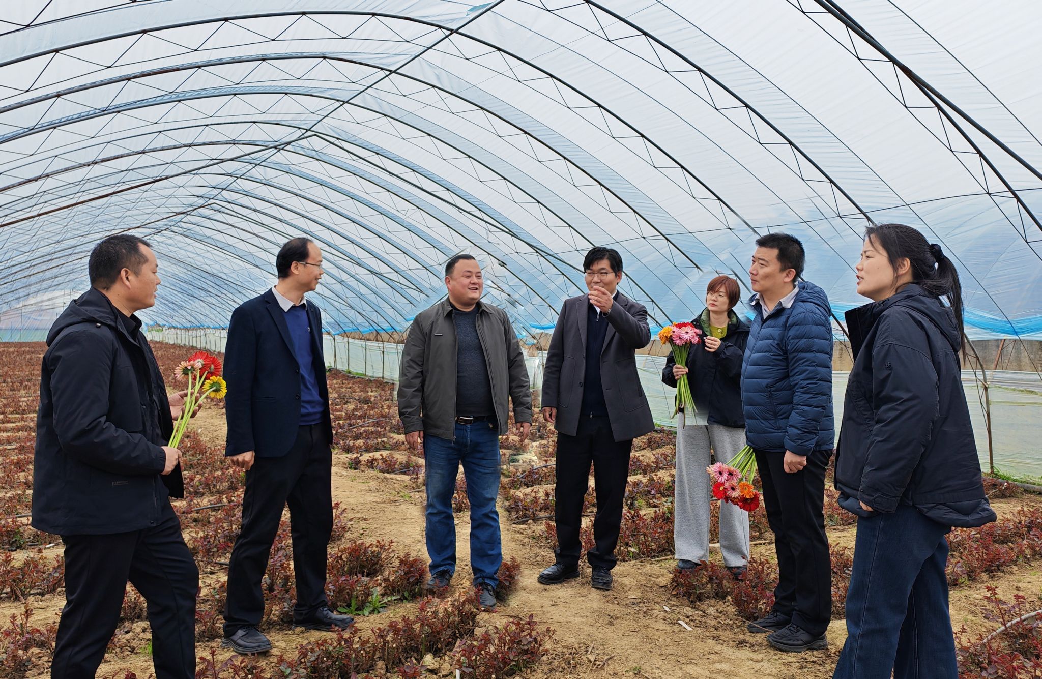 在冠军村玫瑰种植产业园,大家走进温室大棚,实地察看玫瑰长势、管护情况,细致了解2026年玫瑰节筹备、农旅融合发展规划等细节。结合学院在农副产品深加工等方面的经验积累,调研团队为玫瑰产业提质升级、玫瑰节高质量举办提出针对性、可操作的指导建议,助力乡村特色产业做优做强。