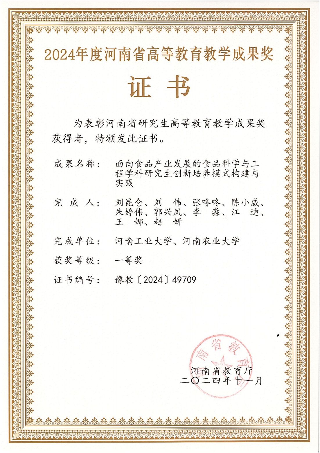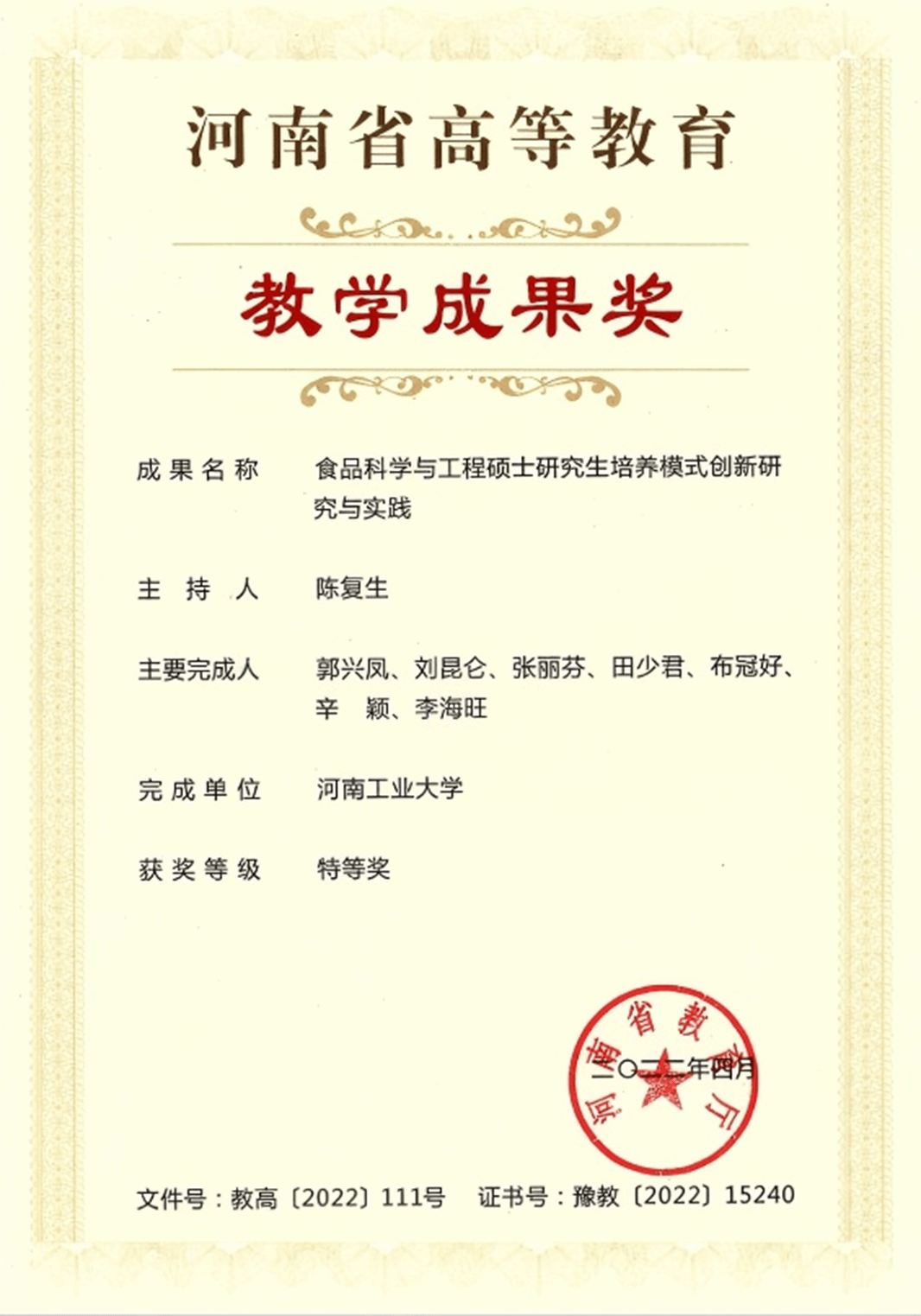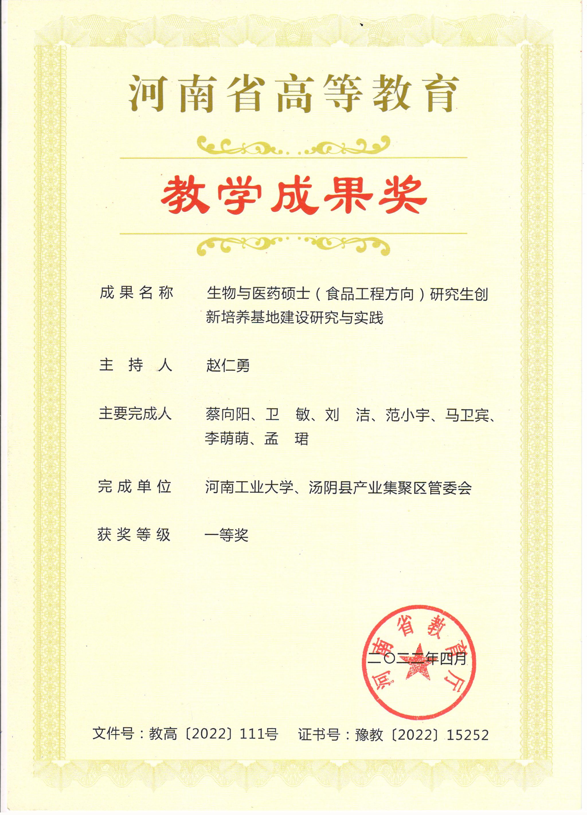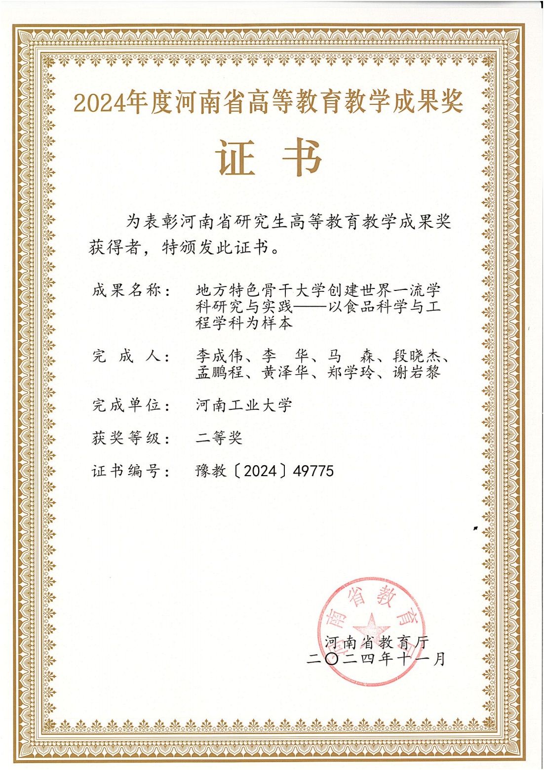 河南省研究生高等教育教学成果奖