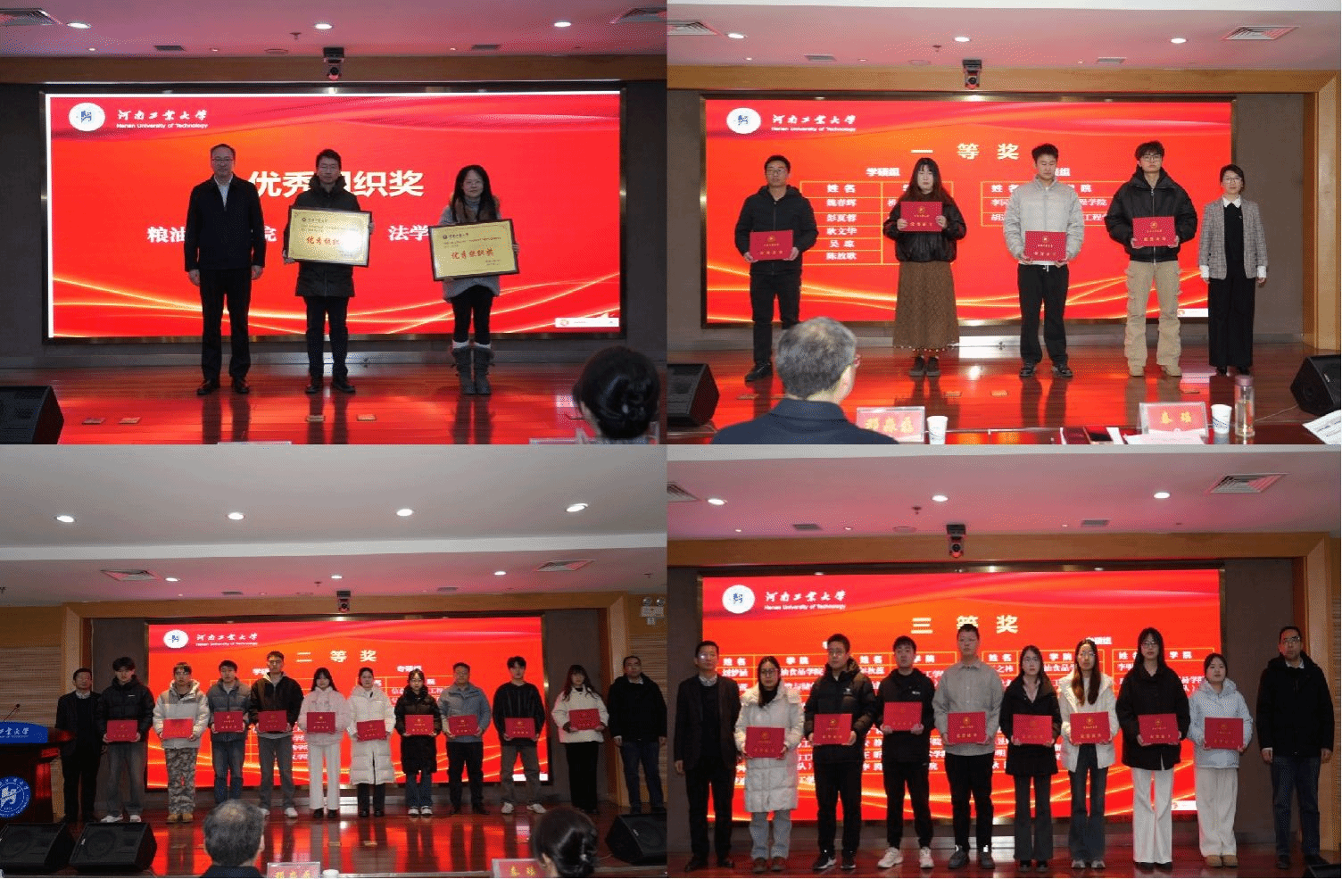 会上,粮油食品学院副院长刘伟、法学院副院长南海燕作为“学术创新年”研究生系列活动优秀组织奖获奖单位代表,先后分享了学院在研究生创新培养方面的特色经验与未来发展规划;文献综述大赛、案例大赛获奖研究生代表李园杰、陈慧琼分别结合赛事参与经历,围绕综述撰写技巧、案例挖掘思路等内容,与会师生分享了宝贵的参赛心得与成长感悟。随后,邓淼磊副校长及研究生院领导为获奖单位和获奖研究生逐一颁发荣誉证书与奖牌。