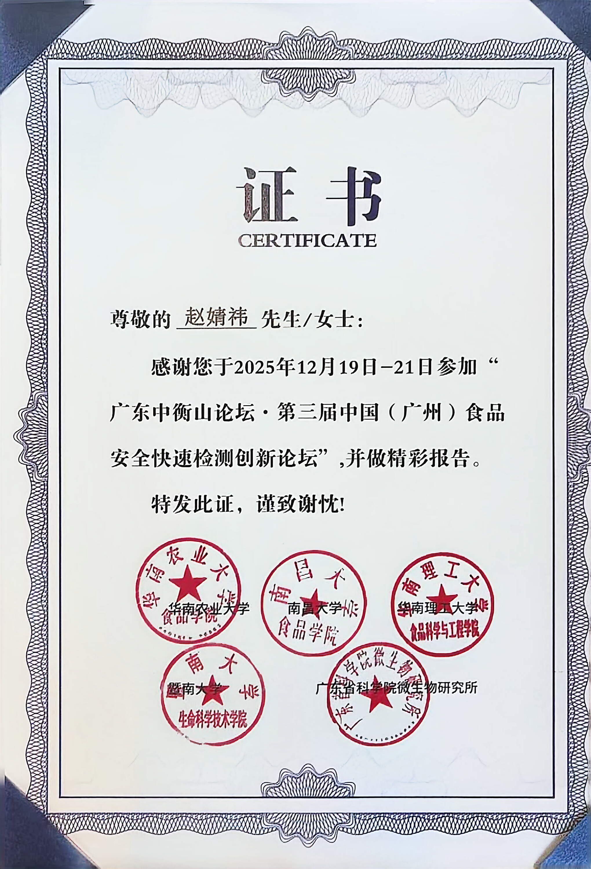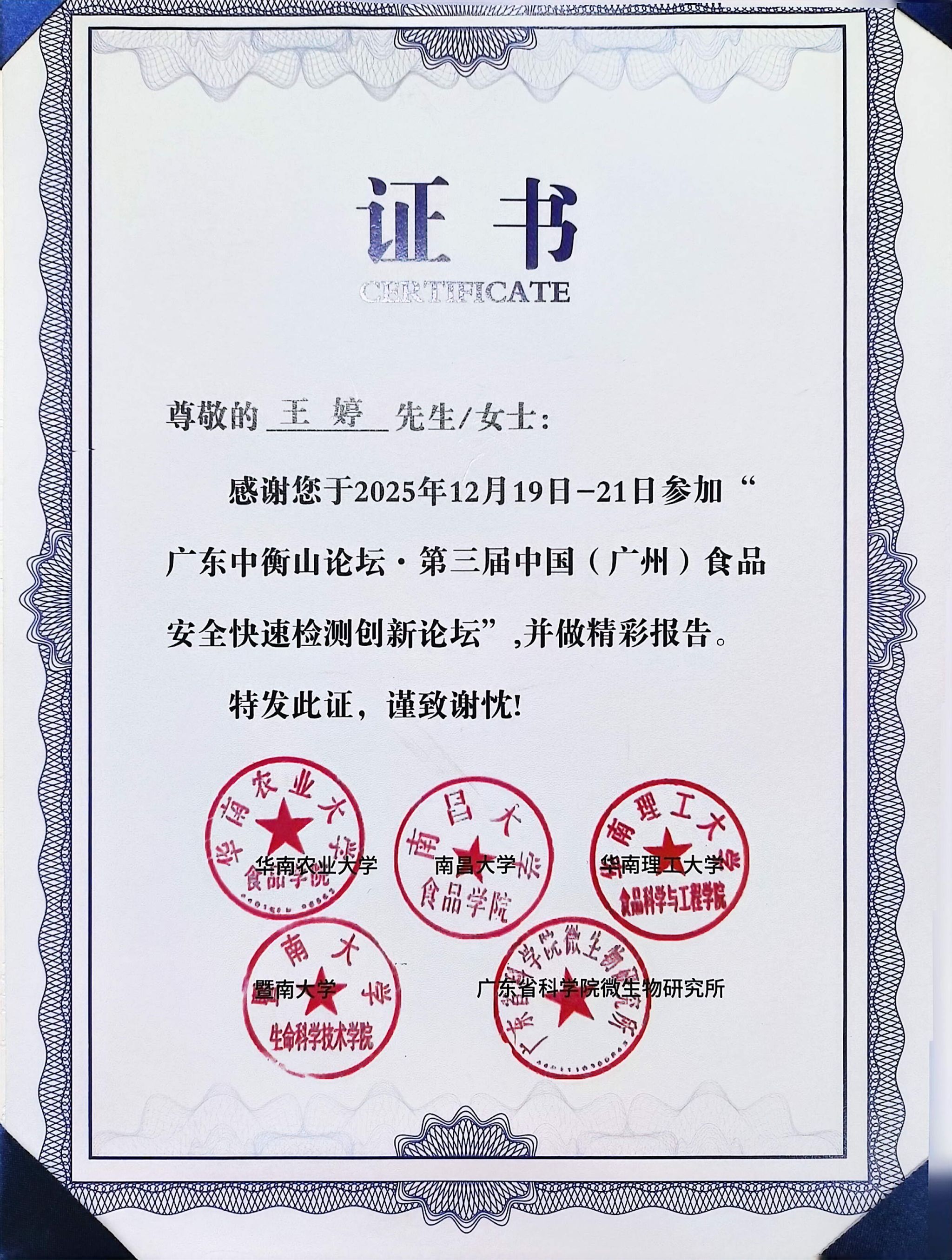 研究生参加第三届食品安全快速检测创新论坛